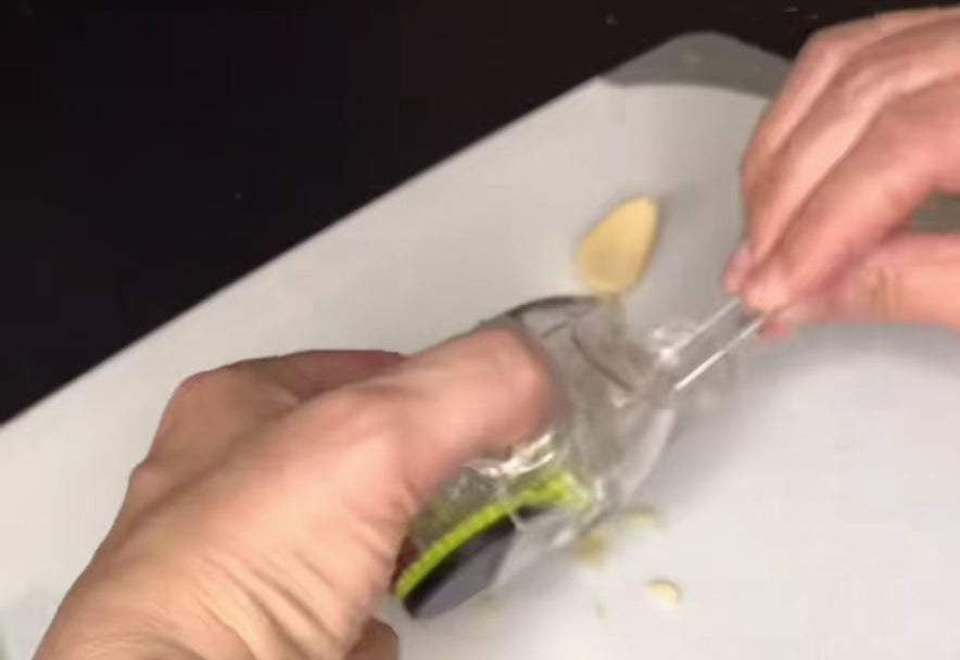 - Open mincer and insert garlic, holds up to 2 pieces at a time